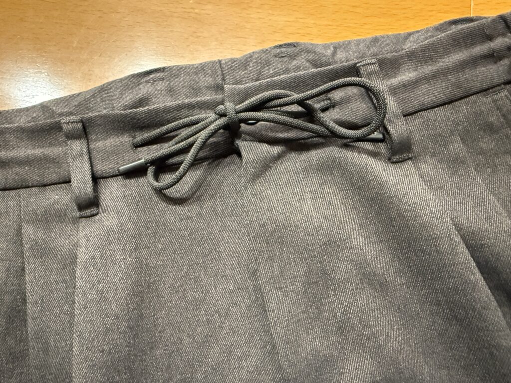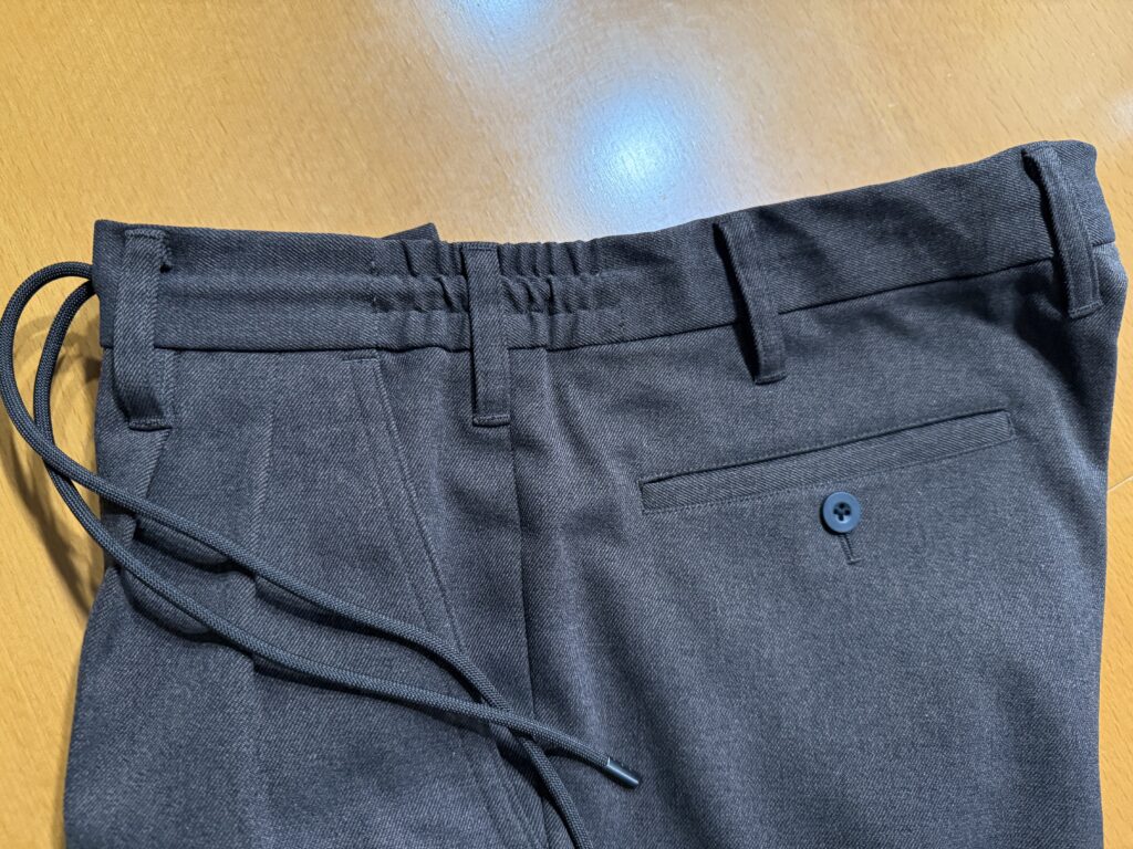 そしてベルトをしないのであればサイドにゴムを入れて伸縮性を持たせることも出来ますので、すこぶる快適です。