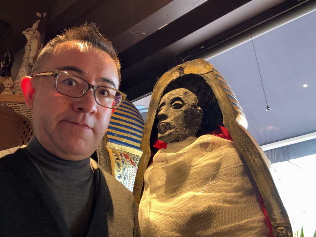 正確にはミイラ風のオブジェなんですけど、インパクトはありますよね。